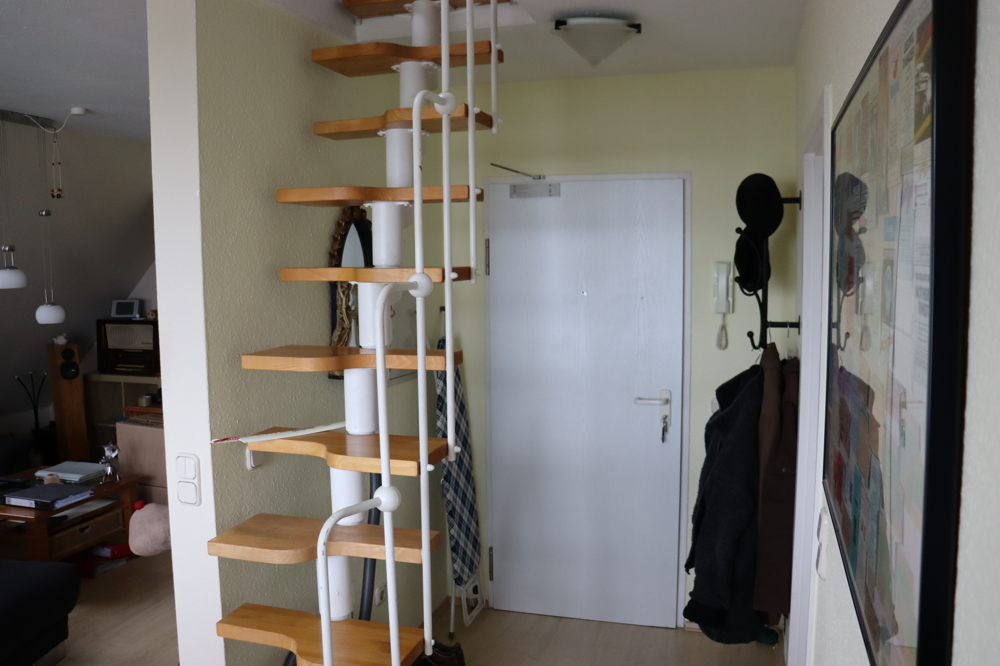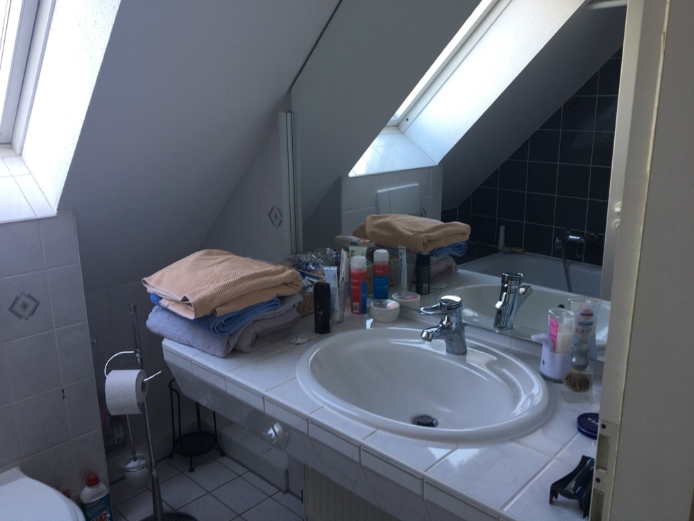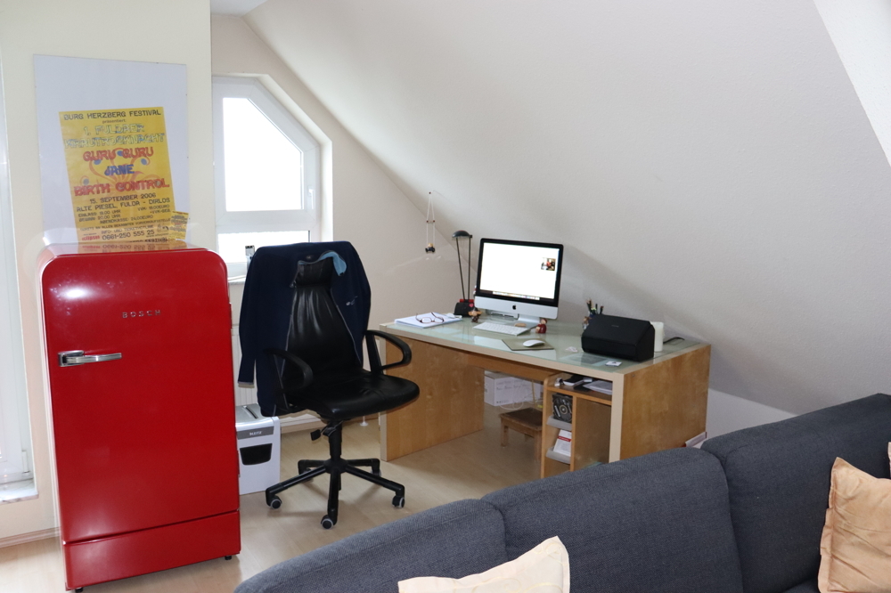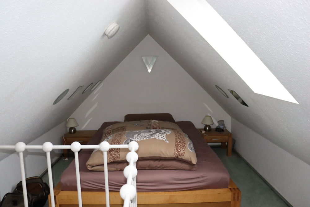 Diese solide, gepflegte und behagliche 1,5 Zimmerwohnung befindet sich in Flörsheim Wicker mit Feldrandlage und Blick ins Grüne. Die Wohnung liegt am Ende einer Sackgasse und somit verkehrsruhig. Sie ist mit einer kleinen Küche und einem Bad mit Wanne ausgestattet. Über eine Treppe kommen sie einen Stock höher in das ausgebaute Dachgeschoß. Diesen Raum kann man ideal als Schlafzimmer nutzen. Alle Räume haben Fenster und somit ist die Wohnung sehr hell.Ein Tiefgaragenstellplatz gehört auch zur Wohnung. Sowie ein Waschraum,ein Fahhradkeller und natürlich ein Kellerraum.