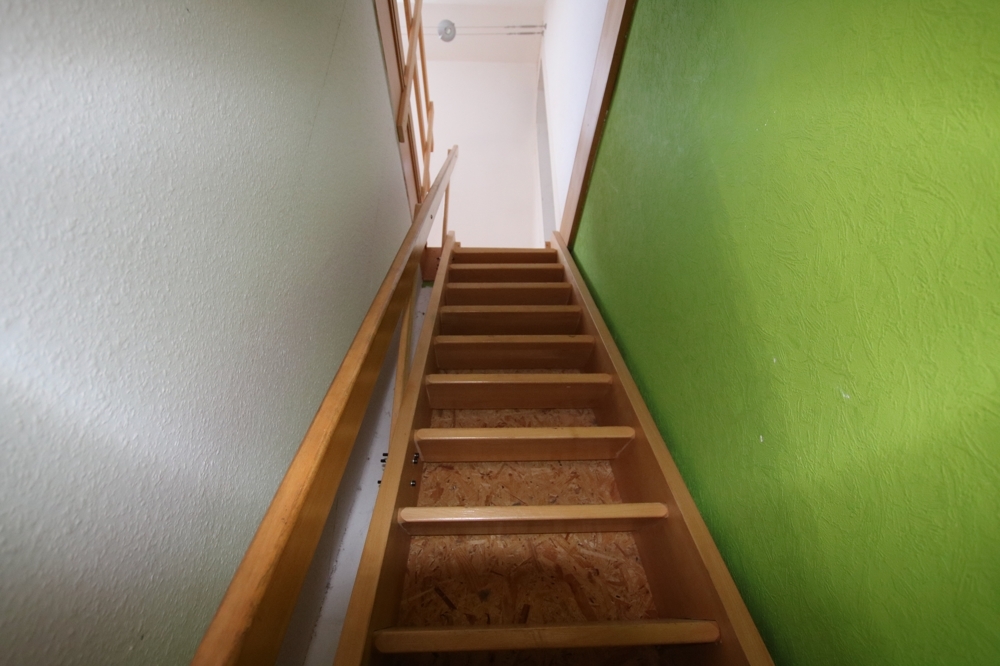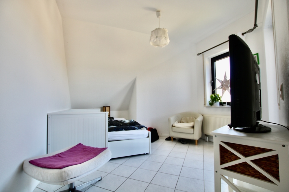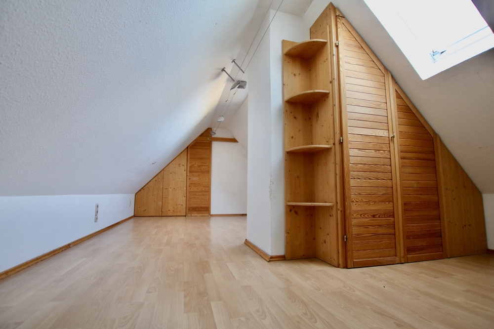 Über das Treppenhaus gelangt man über einen kleinen Flur ins Dachgeschoss. Der Clou dieser Etage ist, dass sich hier zwei völlig autarke Wohnbereiche mit jeweils zwei Zimmern, Küche und Bad voneinander separieren lassen. Die Wohnung rechterhand verfügt außerdem über einen großzügigen Balkon. Der über dem Dachgeschoss liegende Spitzboden ist ebenfalls ausgebaut. Hier stehen ca. 35 qm Nutzfläche zur kreativen Nutzung zur Verfügung.