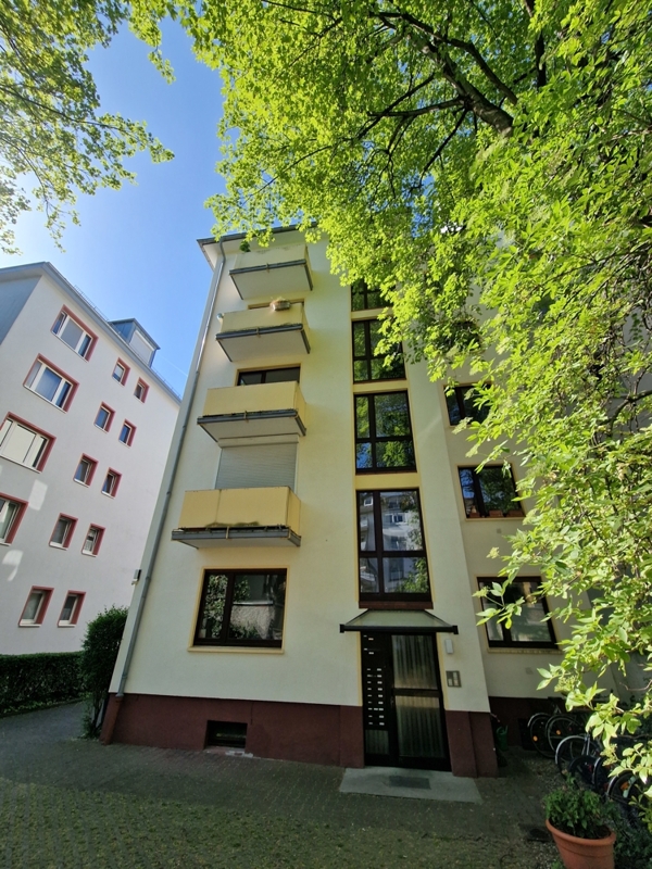 Die im beliebten Stadtteil Frankfurt-Nordend gelegene Wohnung befindet sich in einem gepflegten Mehrfamilienhaus. Die schöne 2-Zimmer Wohnung mit Küche, Bad, Balkon und Keller ist eine von 9 Wohneinheiten, die sich über 5 Etagen verteilen. Das Mehrfamilienhaus wurde im Jahr 1950 erbaut und seitdem laufend instandgehalten. Die zum Kauf angebotene Wohnung befindet sich im 2. Obergeschoss.Passend zum Baujahr 1950 gelangen Sie von der Straße aus über eine Einfahrt zum Hinterhof, wo sich die Eingangstür befindet. Umgeben von Bäumen, Hecken und Grünflächen finden Sie hier eine schöne Sitzgelegenheit, auf welcher Sie, direkt vor Ihrer Haustür und fernab des quirligen Szeneviertels, vom Alltag entspannen können.