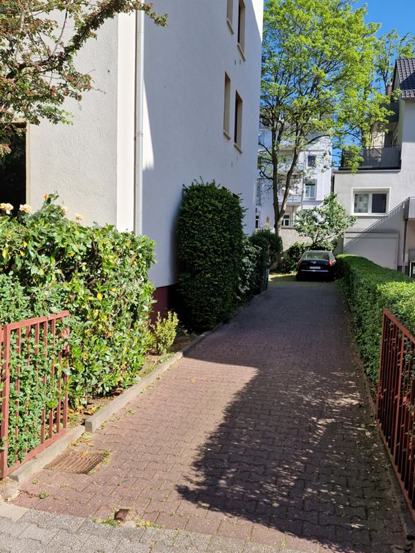 Auch für Ihr Fahrrad findet sich im ruhigen Hinterhof die passende Abstellmöglichkeit. Die weiß/gelb verputzte Fassade sorgt, in Kombination mit der anthrazitfarbenen Hauseingangstür und dem bordeaux-roten Sockel für ein modernes und dezentes Äußeres.