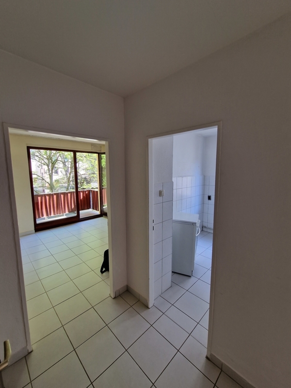 Über das gepflegte Treppenhaus gelangen Sie in die dritte Etage (2. OG) des schönen Mehrfamilienhauses. Dort finden Sie die helle und äußerst effizient geschnittene 2-Zimmer-Wohnung auf ca. 51 m² Wohnfläche. Sie betreten die Wohnung und gelangen in einen geräumigen Flur, der auch einen Wandschrank und eine Nische für Ihre Garderobe oder einen weiteren Schrank bereithält. Vom Flur aus können Sie jeden Raum der Wohnung erreichen.Zur linken Seite liegt ein schönes Schlafzimmer mit bodentiefen Fenstern und mit Balkon, der zum ruhigen Hinterhof gelegen ist. Durch diese Lage finden Sie Ruhe, und es ensteht eine sehr angenehme Atmosphäre. Gegenüber dem Wohnungseingang befindet sich die weiß geflieste Küche, die mit einem Gasanschluss ausgestattet ist. Über die Diele gelangt man in das Tageslichtbad, das mit Erdgastherme, Toilette, Badewanne und einem Waschbecken ausgestattet ist. Nebenan finden Sie das geräumige Wohnzimmer mit großzügigen Fenstern und weißen Fliesen.