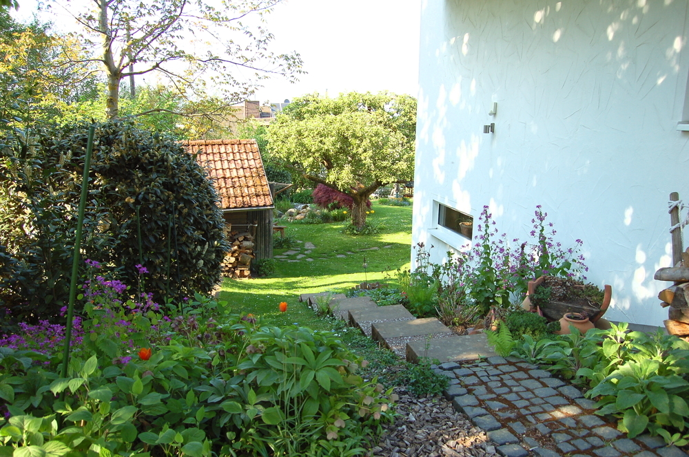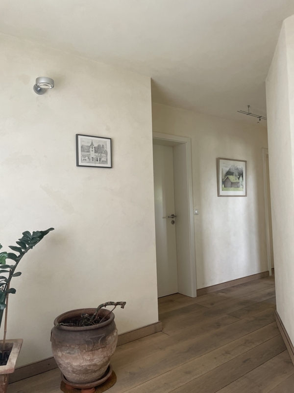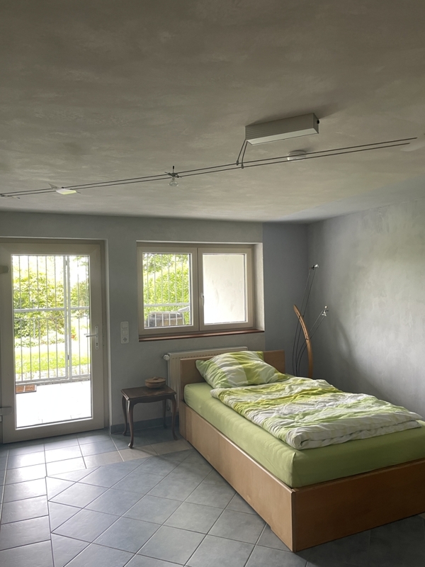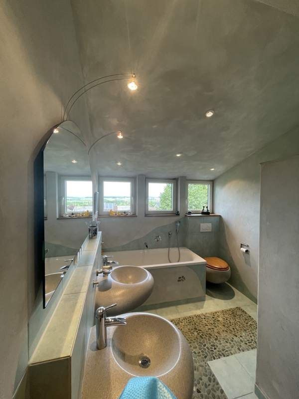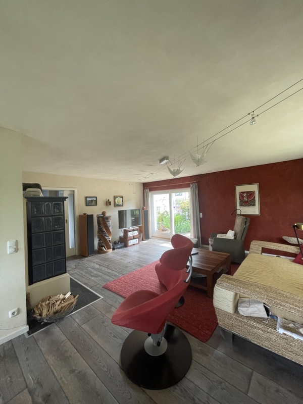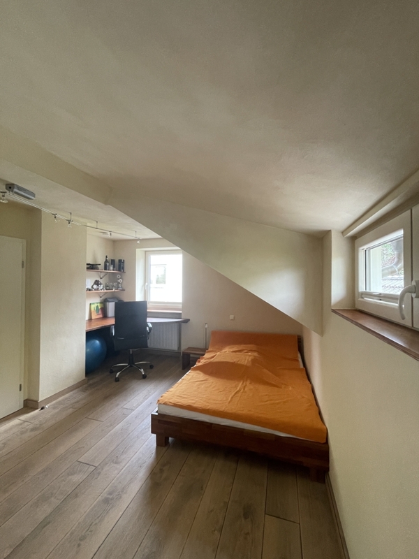 Im Erdgeschoss befindet sich der große Wohn-und Essbereich angrenzend an die Küche. Im Wohnbereich befindet sich ein moderner Ofen, mit dem sie im Winter sehr effizient heizen können. Ein weiteres Zimmer sowie eine Gästetoilette befinden sich ebenfalls auf dieser Ebene. Im Obergeschoss befindet sich ein helles Wannen/Duschbad mit Fußbodenheizung, sowie ein großes Schlafzimmer mit Balkon. Ein weiteres Zimmer mit einer Ankleide befindet sich ebenfalls im Obergeschoss. Im Untergeschoß befindet sich nochmals ein geräumiges Schlafzimmer inkl. Fußbodenheizung, sowie zwei aktuell genutzte Büroräume. 3 Kellerräume sind ebenfalls im Untergeschoss, in denen sich unter anderem die Haustechnik der Solarthermie befindet und die Netzwerkverkabelung des Hauses. Die komplette Technik im Haus wurde bei der Kernsanierung erneuert, sowie eine Vorrüstung auf einen Umbau in eine komplette Solaranlage, die auf der Garage montiert werden könnte. Im ganzen Haus wurde auf sehr hochwertige Materialien geachtet. Die Böden sind teilweise mit hochwertigen Eichendielen und Schiefer, die Wände mit hochwertigem diffusionsoffenem Lehmstreichputz und Lehmstreichfarbe behandelt. Nicht nur der Garten, sondern auch das Haus hinterlässt einen grünen Fußabdruck. Das Objekt wird nicht mehr mit Öl beheizt, sondern ausschließlich mit Gas und dem Kachelofen. Dieser darf ohne Einschränkung genutzt werden, darf da es ein Grundkachelofen ist.