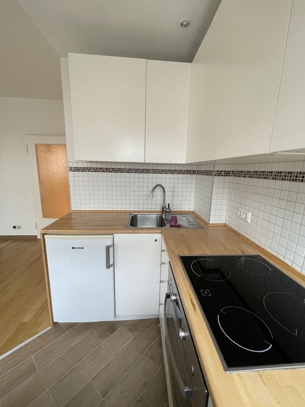 Die Küche auf kleinem Raum ist praktisch und durchdacht geplant worden.