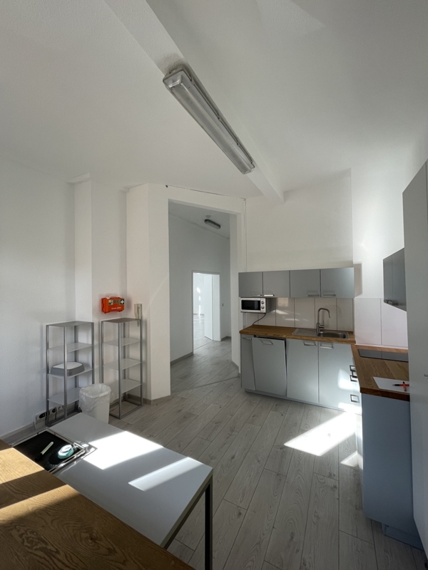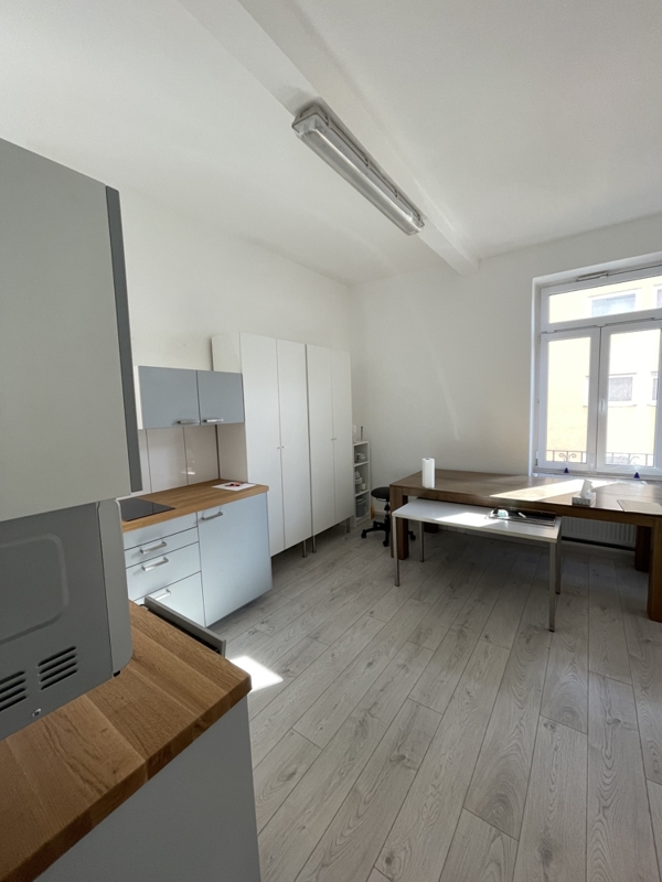 Dieses attraktive Büro im ersten Stock eines vierstöckigen Gebäudes befindet sich in guter und angenehmer Lage mitten in Frankfurts Nordend. Es ist umgeben von den Stilaltbauvillen und befindet sich sehr verkehrsgünstig direkt an der U-Bahn. Die Räumlichkeiten wurden gerade frisch renoviert.Man betritt das Büro über einen gemeinschaftlichen Flur. Links neben dem Büroeingang befindet sich eine geräumige Küche. Eine Welcome Theke kann istalliert werden, ideal für eine Praxis oder Rechtsanwälte/Notare. Es befinden sich zwei großzügige Einzelbüros, die sowohl eigene Zugänge haben, als auch untereinander durch eine Verbindungstür verknüpft sind. Das gesamte Büro ist mit hellem Laminat ausgelegt. Netzwerkanschlüße sind in allen Räumen vorhanden.