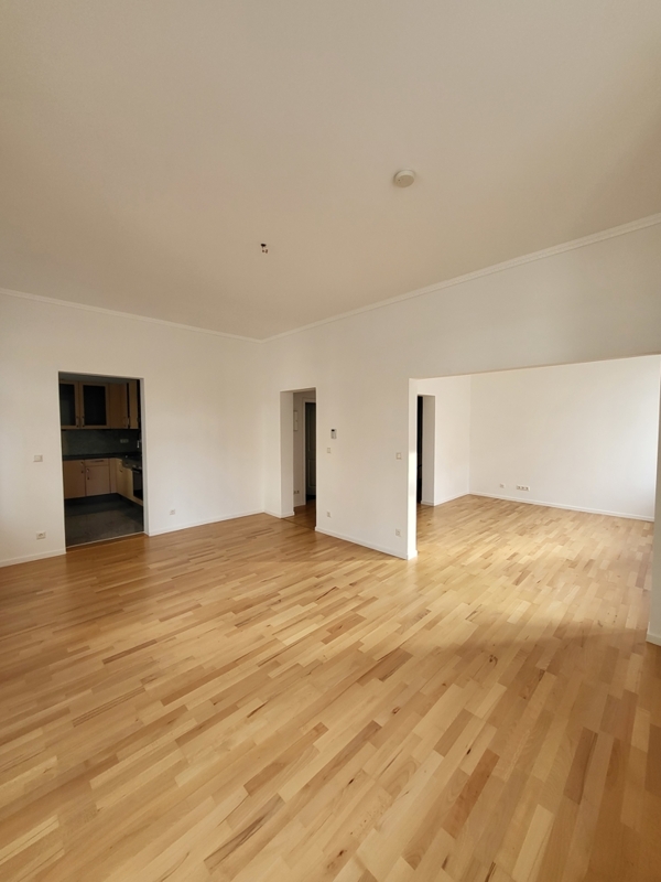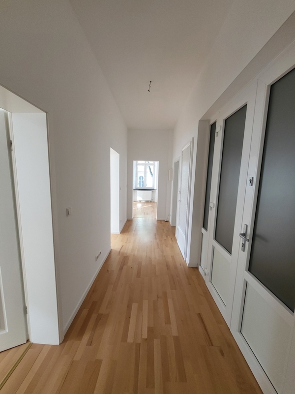 Die hohen Altbaudecken und stillvollen Kassettentüren betonen den charmanten Charakter der Wohnung in voller Gänze.